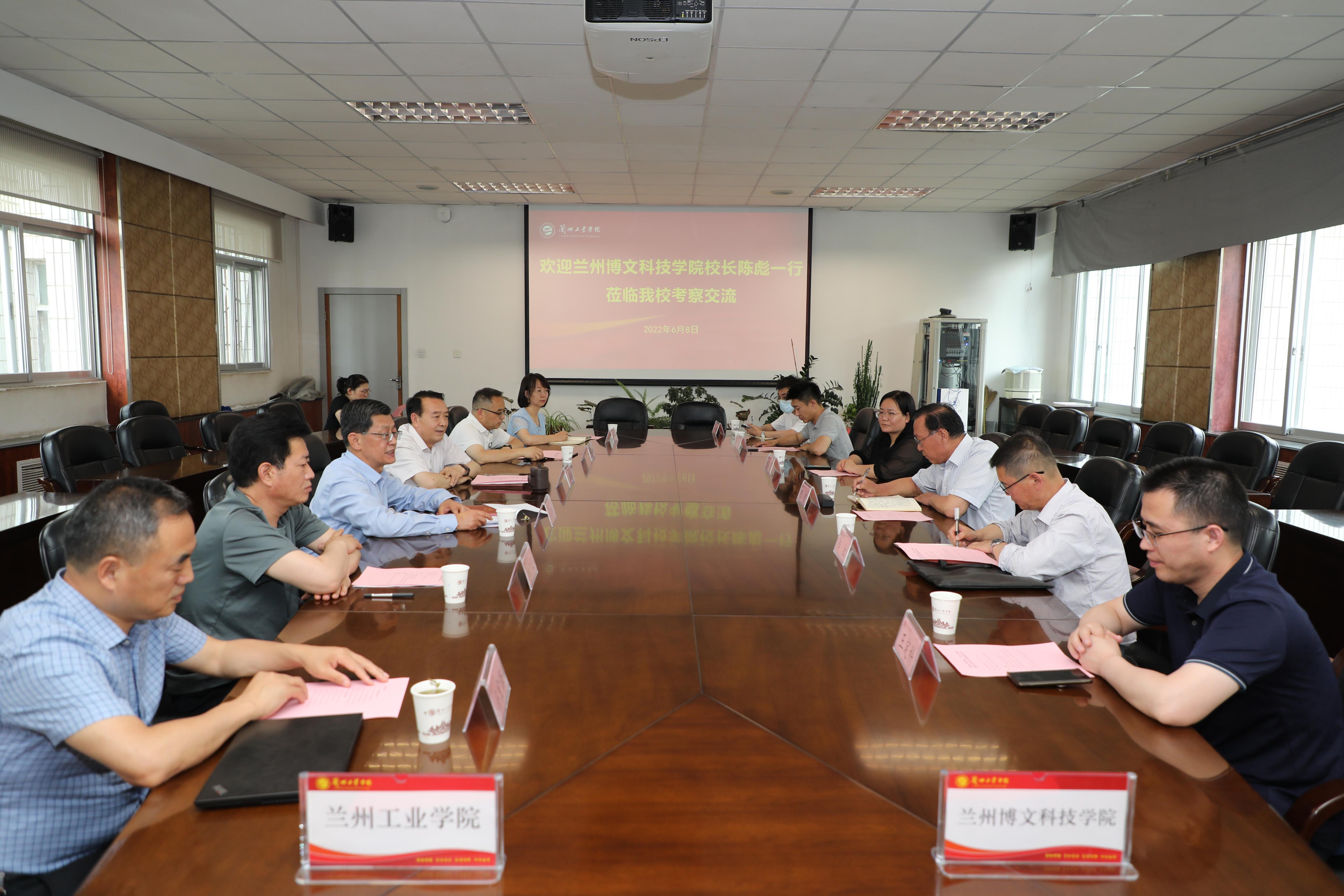 6月8日下午,兰州博文科技学院与兰州工业学院全面加强校校合作签约仪式暨座谈会在第二会议室举行。兰州博文科技学院校长陈彪、党委书记阳红、副校长王芬琴,学校党委书记韦尧兵、校长王华栋出席仪式。韦尧兵主持签约仪式并致辞。兰州博文科技学院人事处、教务处负责人,学校办公室、教务处、人事处、发展规划处负责人参加会议。